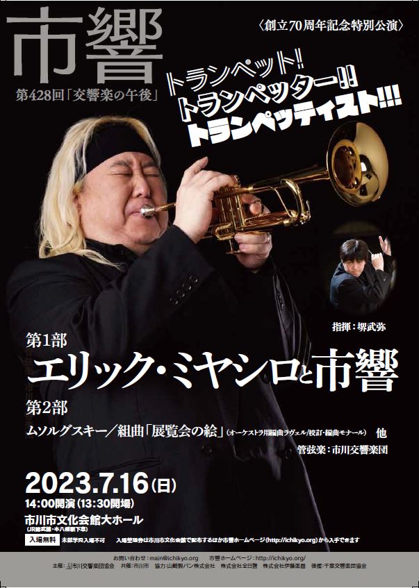 7月13日(日曜) | 市川市文化会館 大ホール | 市川交響楽団協会 047-339-3554 篠田 |