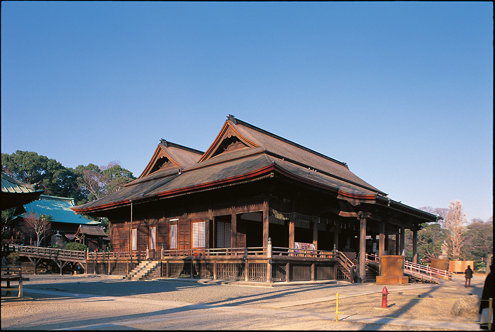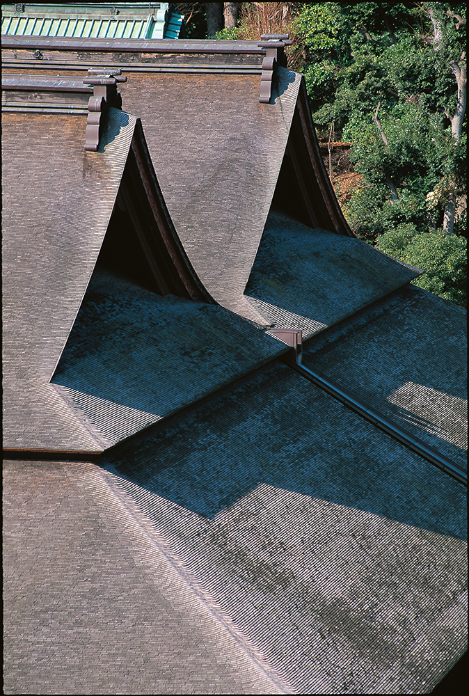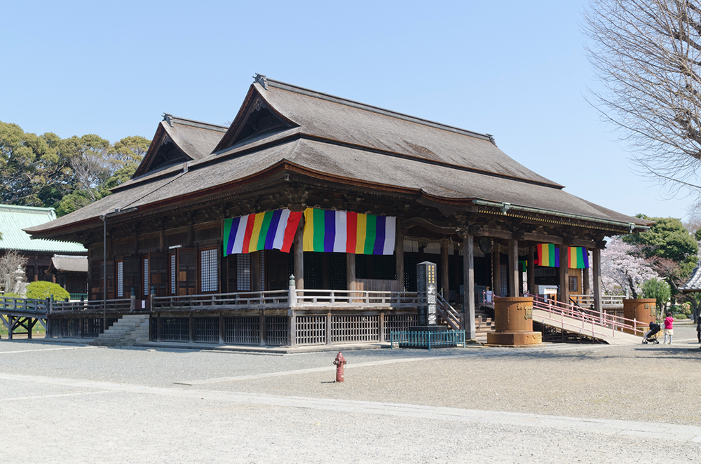 法华经寺院内的“祖师堂(Soshidō)”于1678年始建。祖师堂最早被建于1325年,当时还是较小规模的结构,此后经历了数次重建。优雅的双屋顶特征,在佛教建筑中颇为罕见。相传屋顶的设计可能是模仿自15世纪建于日本冈山县的国宝吉备津神社本殿。除法华经寺以外,吉备津神社是现今仅存的比翼入母屋造(hiyoku irimoya-zukuri)(双翼双坡屋顶)结构的建筑。在祖师堂里发现的木牍资料里记载着1601年修理时的样子。