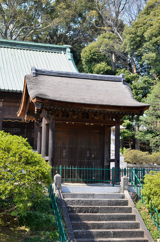 通往法华经寺的参拜道始于黑门(Kuromon)。 距离黑门大约230米处有仁王门(Niōmon)气势雄伟,塑有两尊守护佛陀和佛教的护法金刚。穿过仁王门后,有一条通往法华经寺本堂,长约200米的参拜道,道路两旁有分院寺庙及樱花树。