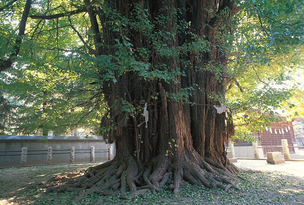 这棵被誉为“千本公孙树(Senbon Ichō)”的巨树,相传其年龄比葛饰八幡宫还大,约有1200年树龄。千本公孙树高约23米,周长约11米,在来自中国的银杏树中也别具特征。银杏树不易起火,因此在日本出于防火目的,经常被种植在神圣的建筑周围。