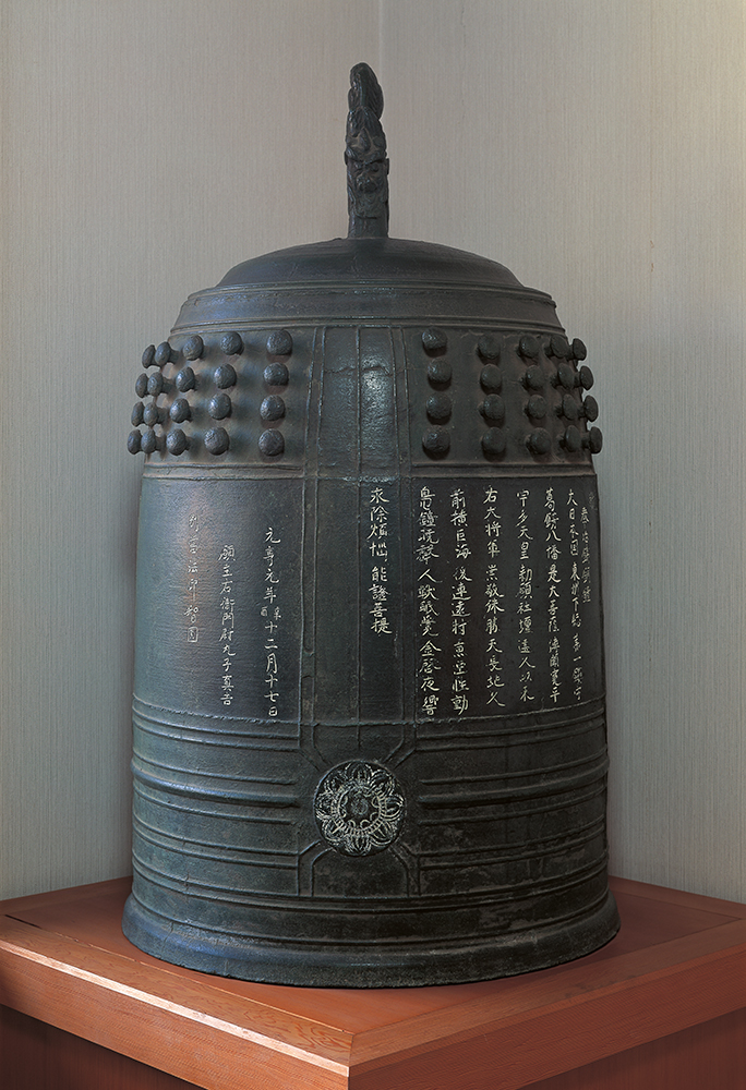 神社的随神门矗立在一排樱花树和银杏树之间,春日樱花树落英缤纷,秋日银杏树熠熠生辉。1868年明治维新后,日本政府将神道教和佛教分开之前,随神门占据了寺院的一个角落。院内有元亨时期(1321-1324)的元亨梵钟。相传梵钟在混乱的室町时期(1336-1573)一度被埋于一棵榉树下,1793年的一场暴风雨掀翻了古树,梵钟重见天日。