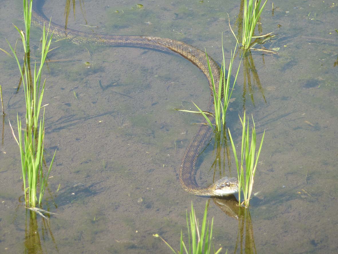 長田谷津の爬虫類は水との結びつきが強く、水辺と縁がないのは斜面林で暮らすジムグリ、建物で暮らすニホンヤモリ、生態がよくわかっていないシロマダラくらいです。それ以外は、池や湿地に生息するか、魚やカエルを餌としていて、生活史のどこかで水辺に関係します。