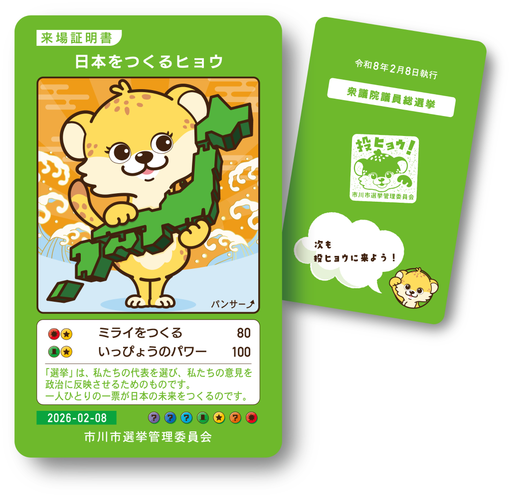 令和8年2月8日執行の衆議院議員総選挙において、投票所に来た方へ市川市オリジナル パンサー⤴カードをお配りします。