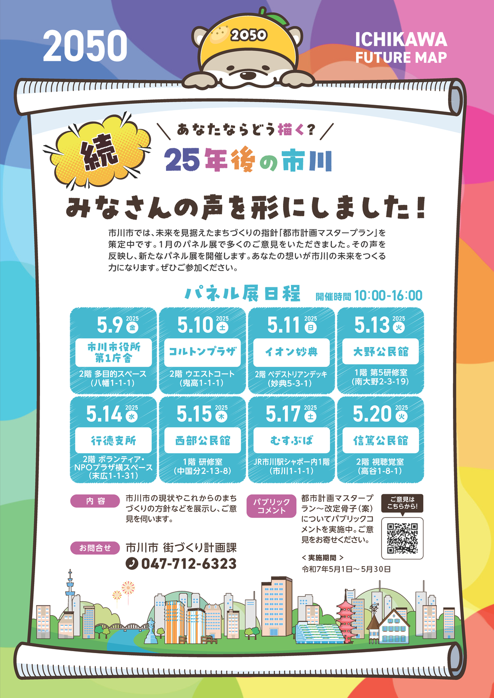 市川市のまちづくりの方針などをまとめたパネルや都市計画マスタープラン(素案)の展示を市内2箇所で実施しました。