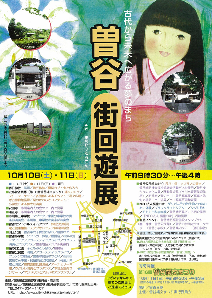 「街回遊展」は、市川市の街を歩き回遊しながら地域の歴史や文化に触れ、その街の魅力や活力を再発見しようという目的で開催されるイベントです。12回目を迎える今回は曽谷が舞台です。