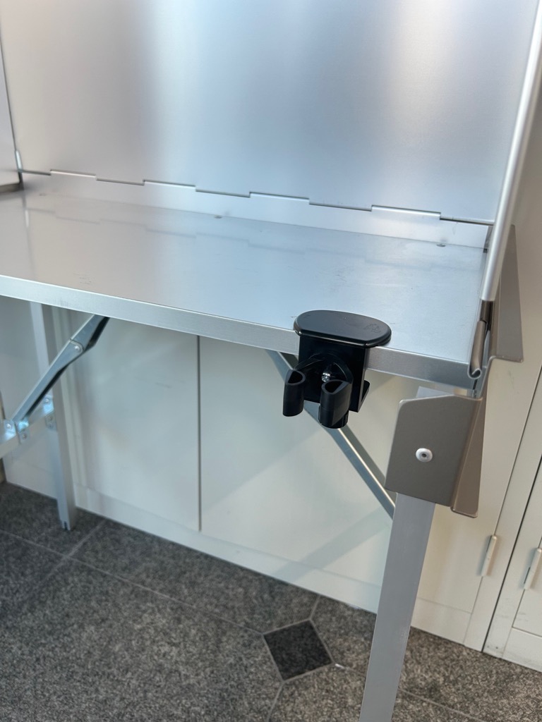 車椅子に座ったままでも記載ができる高さの低い記載台です。