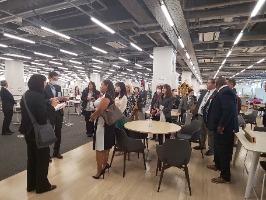 第1庁舎では、街づくり部による事例紹介や、1階ワンストップサービスの紹介、姉妹都市締結60周年記念パネル展示等を見学しました。