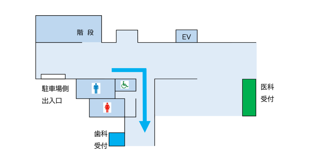 ハートフル障がい者等歯科診療所受付までは以下の図をご確認ください。
