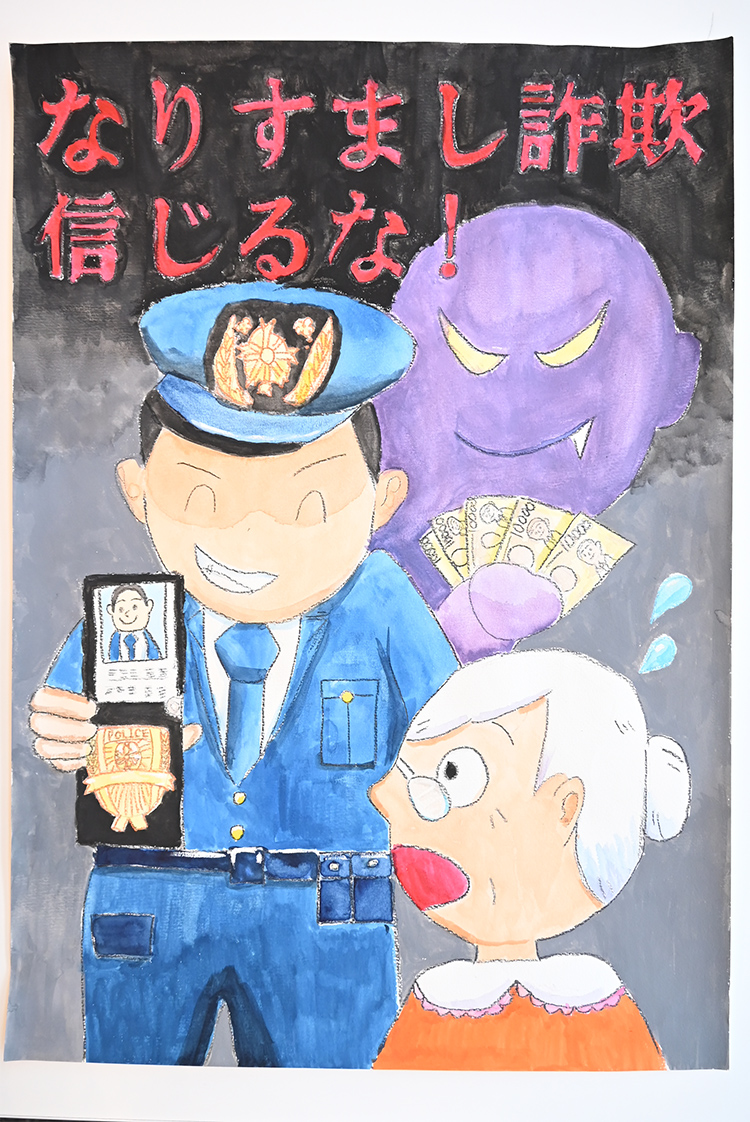 今年度は、2,000点の応募があり、審査の結果、小学生低学年、中学年、高学年、中学生の各部門より優秀賞7点、優良賞14点の合計21点の入賞作品が決まり、令和7年11月7日に全日警ホールで表彰式を行いました。