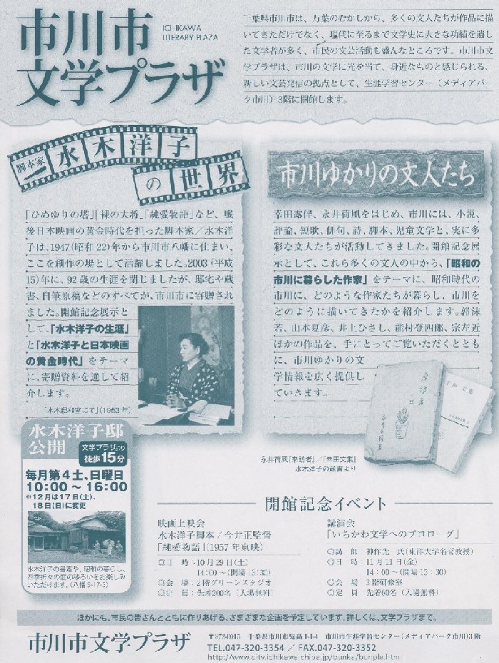 そこで、文学プラザの開館記念展示として、「昭和の市川に暮らした作家」をテーマに取り上げてみました。